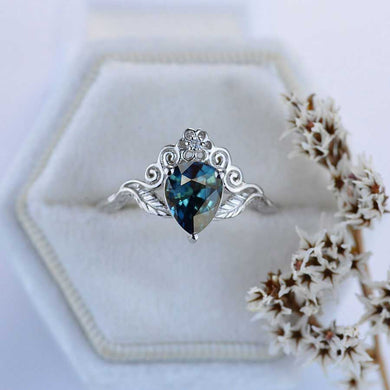 3 Carat Pear Alexandrite 14K Rose Gold Engagement. Eternity Ring. Set of Two Rings. Leaf Floral Ring Design